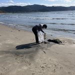 今回も海から漂流したビニール袋やペットボトル、プラスティック類が数多く落ちていました。また、粗大ごみであろうトイレの便器や大型の保冷庫なども砂浜に埋もれており皆で回収作業を行いました。捨てればゴミ、リサイクルすれば資源です。一人一人のご協力をお願いします。